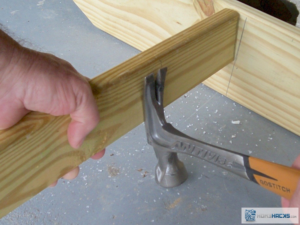 Twisted and warped wood can be a pain to untwist and seat correctly in place. Use a partially driven screw along with your hammer to help pull the twist out of any joist, stud or truss.